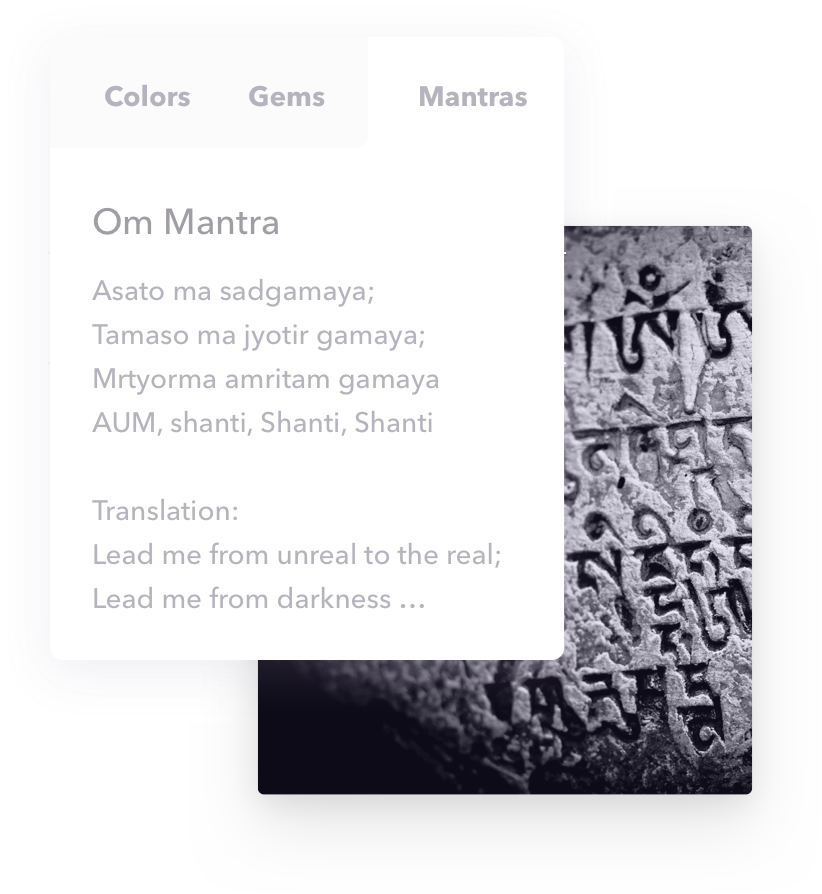 To fully benefit from the ancient wisdom of Ayurveda, we've included personalized mantras that suit your type. Furthermore, you'll get a list of recommended colors and healing gems that match your dosha and promote good health and happiness.